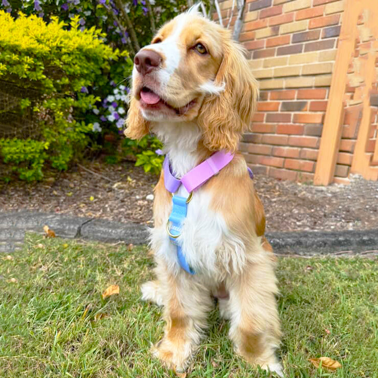 Our Pastel Rainbow Luxe Strap Harness have the following features and are now available for the bigger dogs.