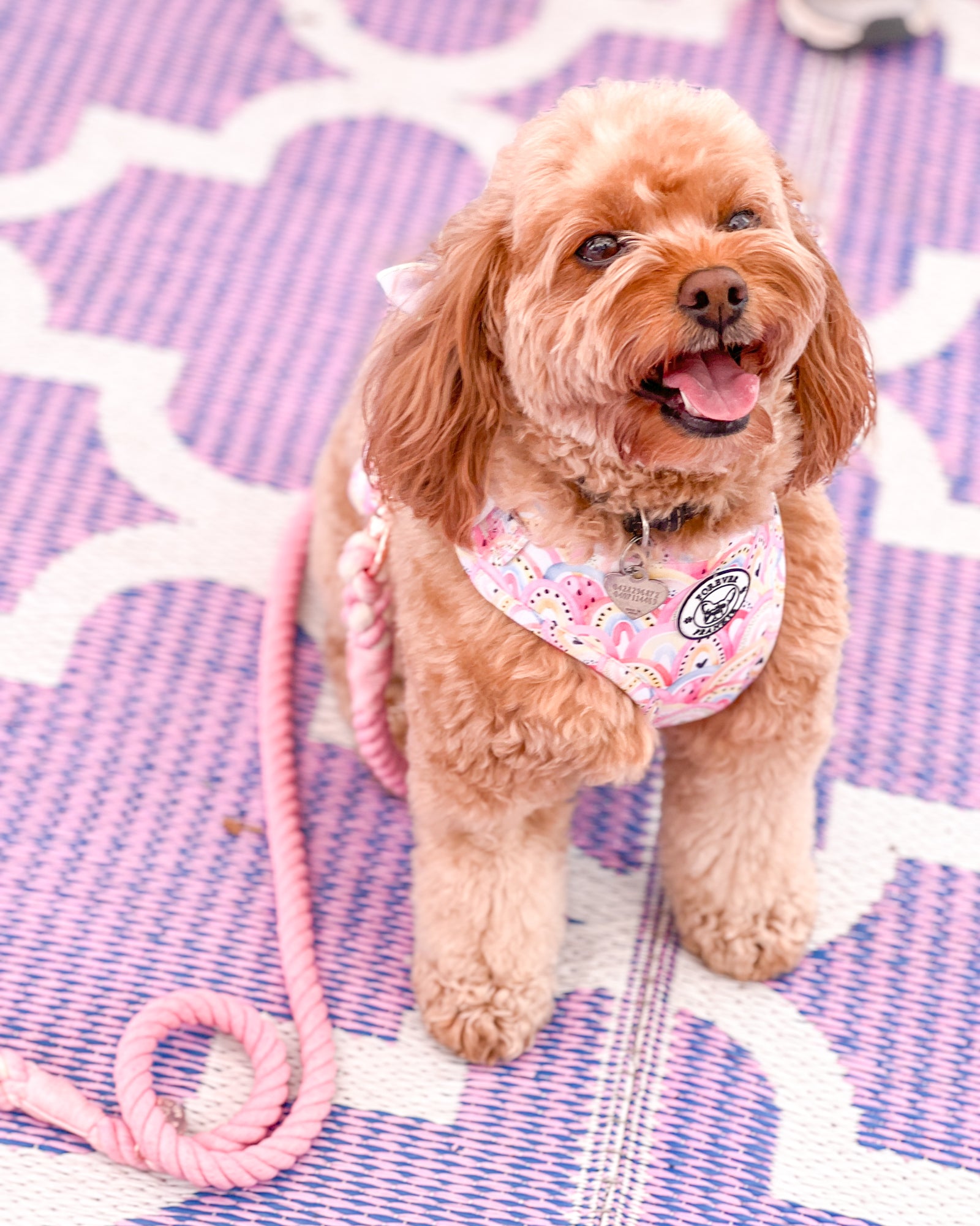 Looking for a stylish and comfortable dog harness that fits your pup perfectly? Look no further than our adjustable dog harness! With straps around the neck and chest, it's easy to find the perfect fit for your furry friend. Plus, with fun and fashionable designs, your pup will look great walking down the street with you.