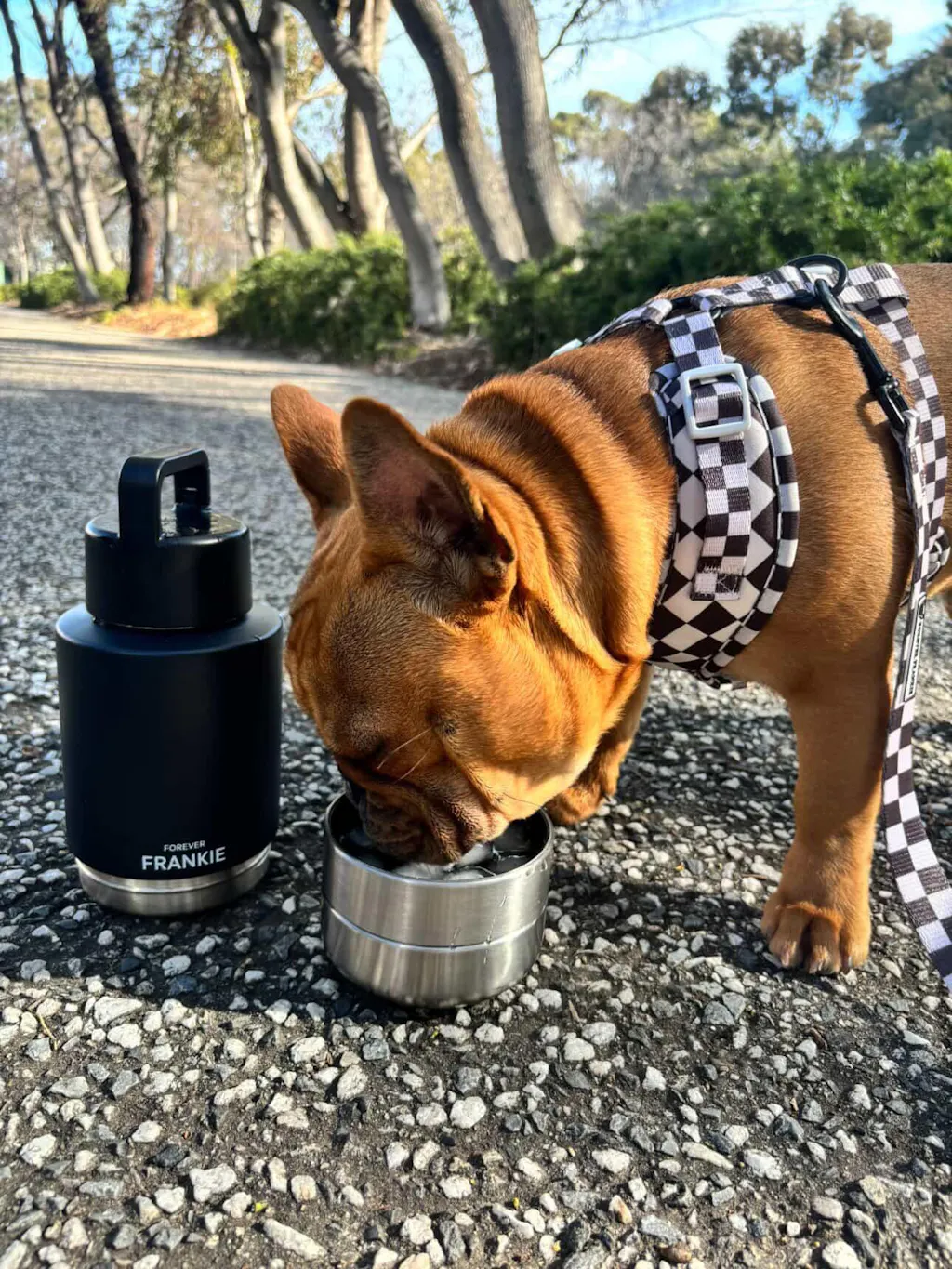 Our 306 Grade stainless steel FOREVER FRANKIE Adventure Drink Bottle is the perfect companion for your outdoor adventures - whether you're heading out by yourself or with your fur baby. With a generous 1-litre capacity and a thoughtful dual-compartment design, this bottle helps you stay hydrated and organised on the go.