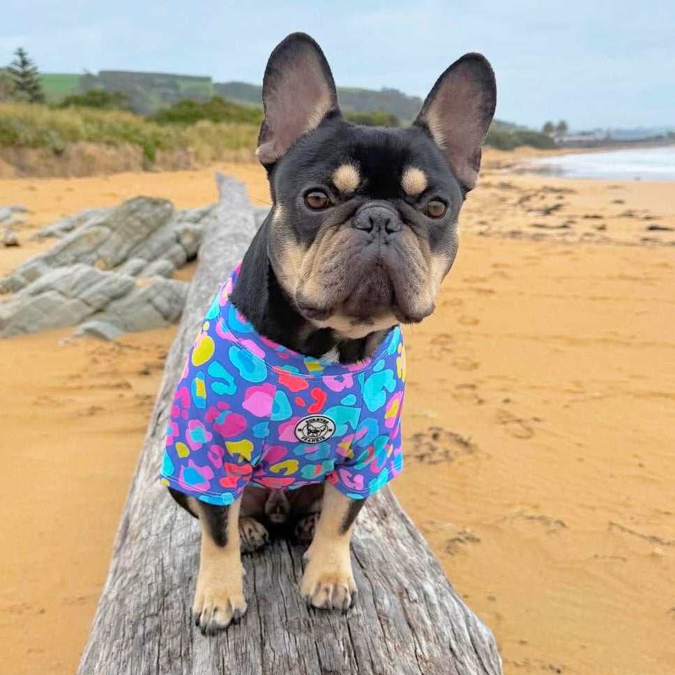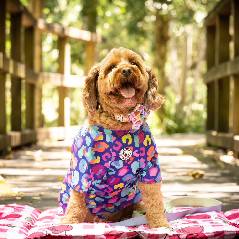 Please note that all Forever Frankie Sun Rashies are made locally in Australia for each order so, unfortunately, we DO NOT offer a refund or exchange. We recommend you measure your pet & refer to our sizing chart to get the correct sizing. If you need further assistance please send an email.