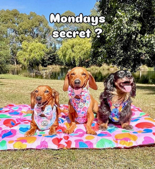 Matching Blanket, Harness, Lead, Poop Bag and Bow tie set available.
