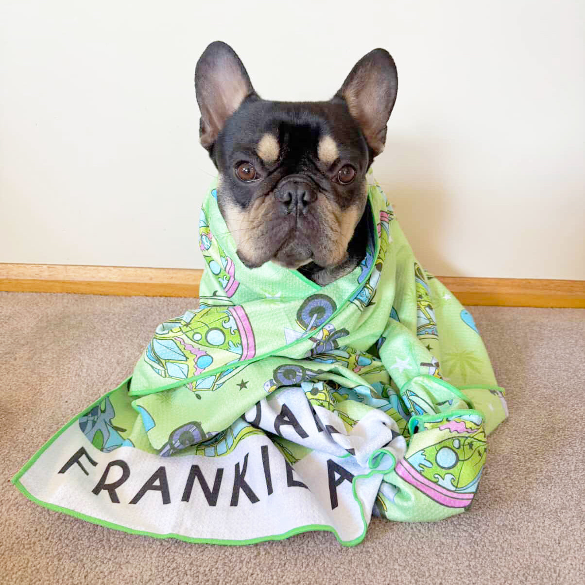 Leave the sand at the beach this Summer with our Forever Frankie Beach & Bath Towel. Perfect to dry off at the beach without bringing all the sand home or without getting all your that yuck stuck to the towel.