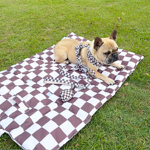Our adventure mats are water-resistant and can be used inside or outside for dog to lay on picnics, café or restaurant coffee dates, or simply to put on the back porch for sunbathing.