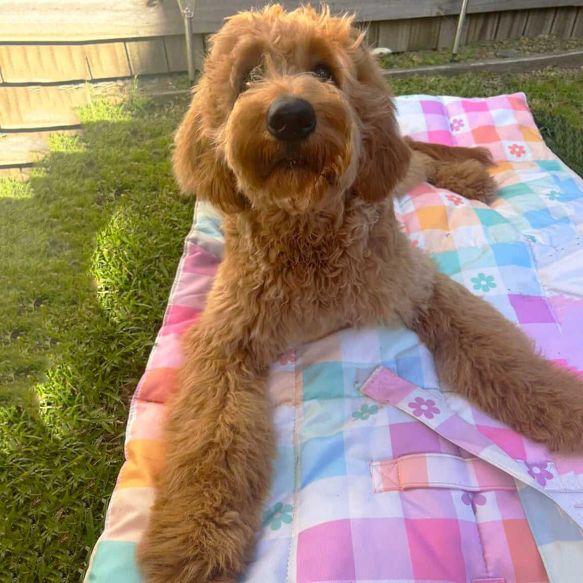 Our adventure mats are water-resistant and can be used inside or outside for dog to lay on picnics, café or restaurant coffee dates, or simply to put on the back porch for sunbathing.