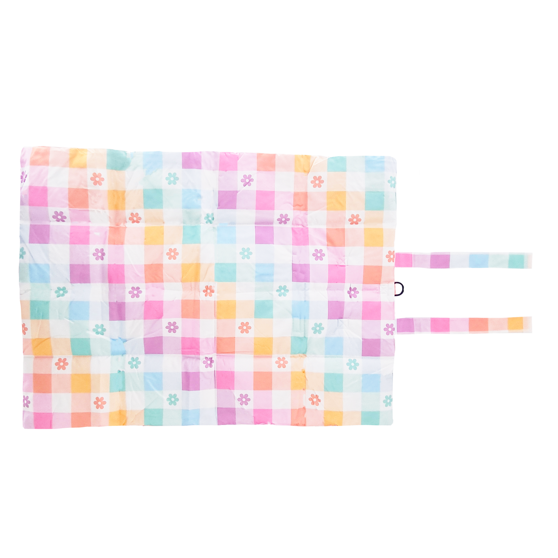 Our adventure mats can easily fold up and be secured in place with the velcro straps. Its lightweight and easy to grip handle also allows you to easily carry the mat to and from your fur babies outHey team,