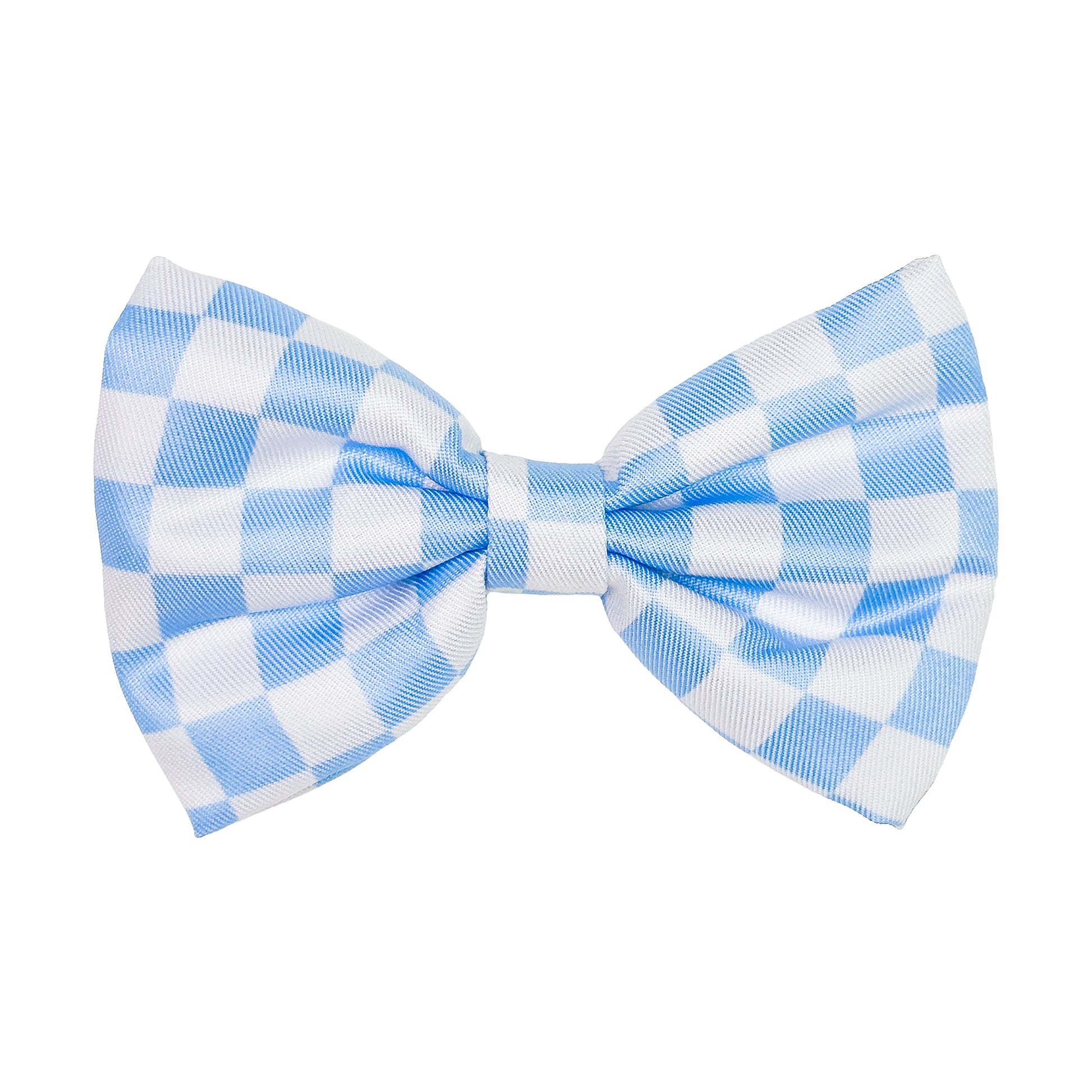 Dress up any collar or harness with our elastic bow ties. This Bow tie goes perfectly with our Sky Check Luxe Harness.