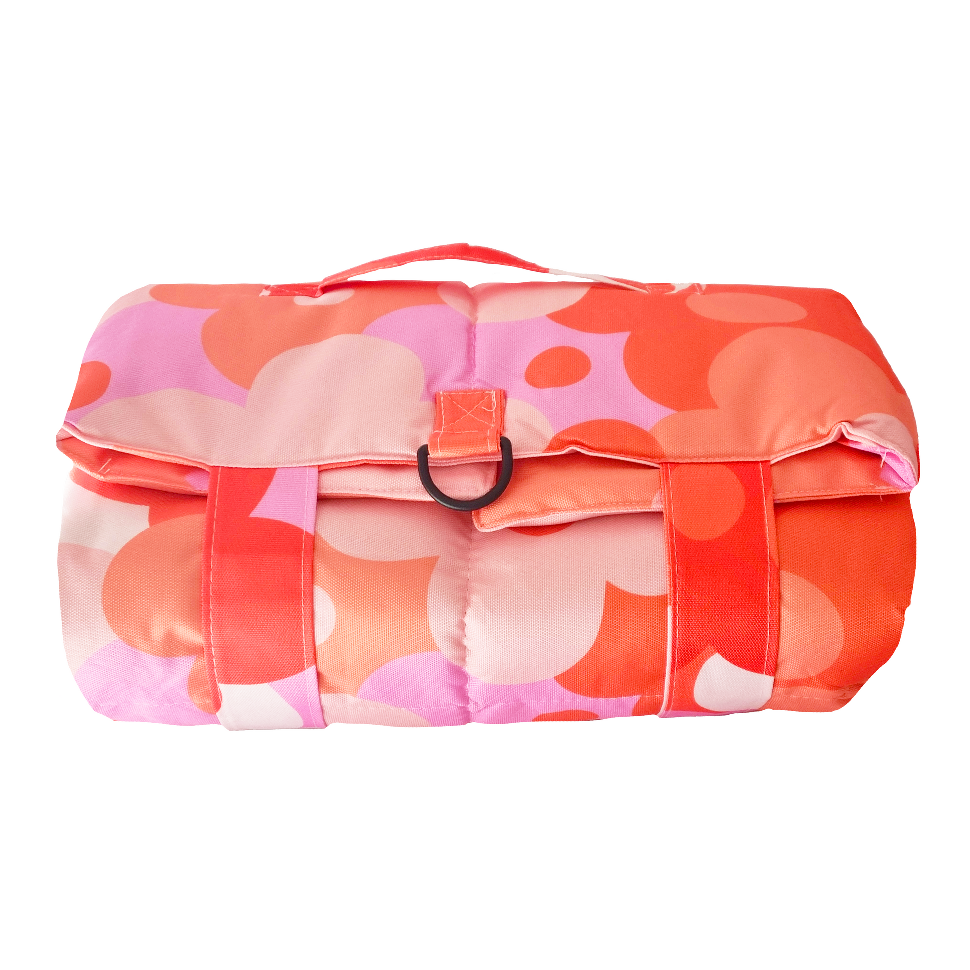 Our adventure mats can easily fold up and be secured in place with the velcro straps. Its lightweight and easy to grip handle also allows you to easily carry the mat to and from your fur babies outdoor activities.