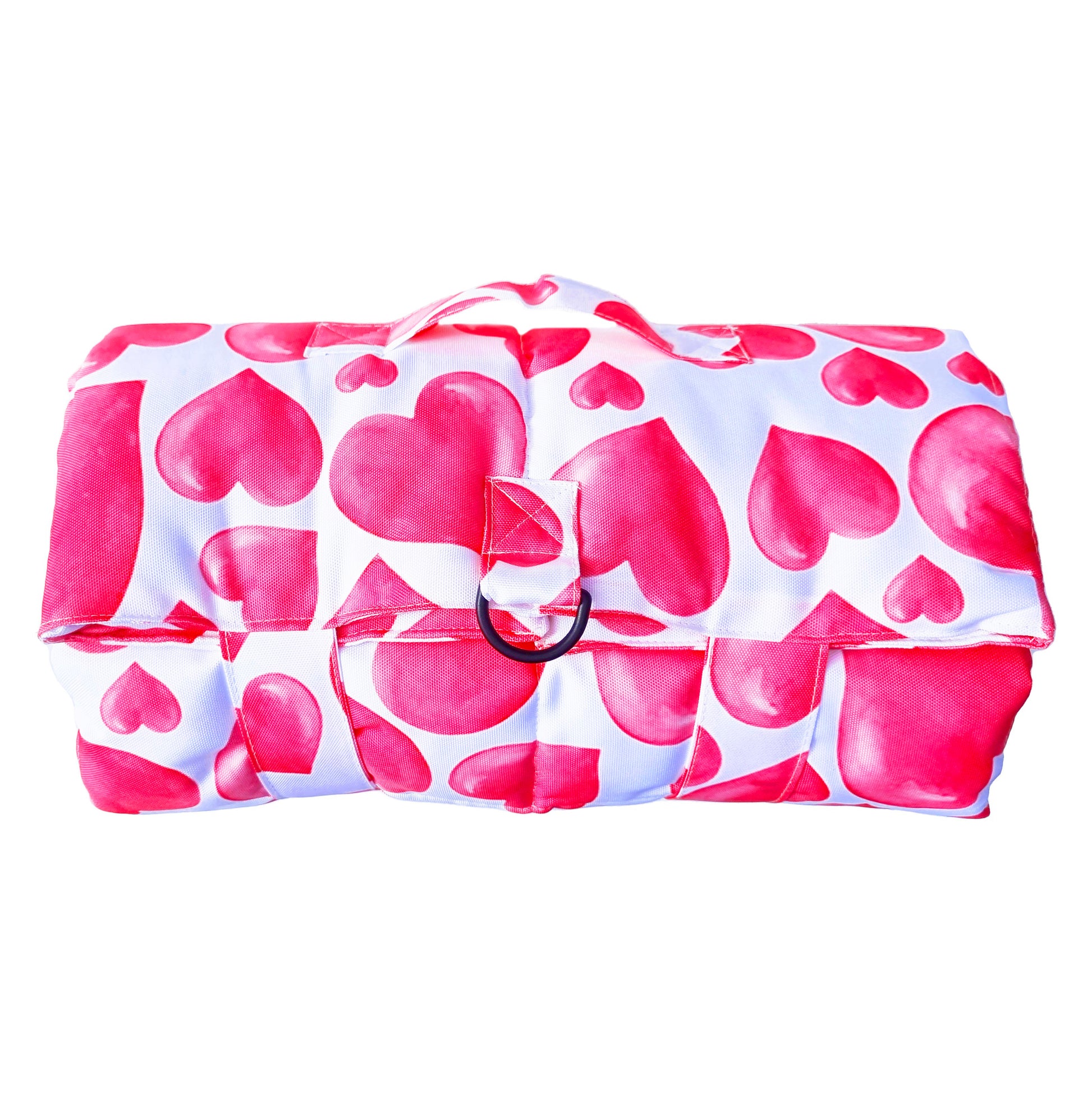 Our adventure mats can easily fold up and be secured in place with the velcro straps. It's lightweight and easy to grip handle also allows you to easily carry the mat to and from your fur babies outdoor activities.